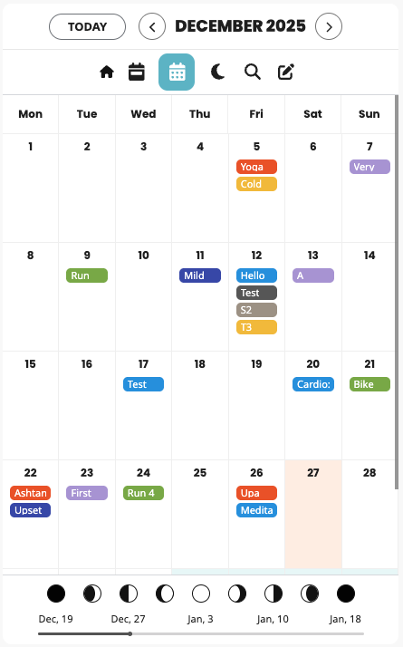 Switch from the standard calendar to a moon-phase (lunisolar) view and align your journaling with natural rhythms.