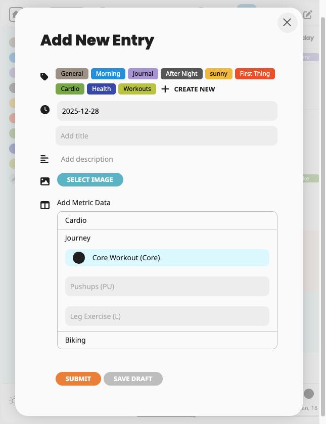 Create unlimited custom fields and attach them to journal entries to track meaningful data alongside your notes.