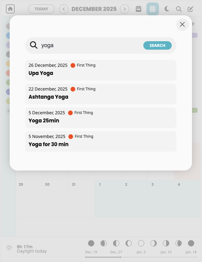 This view is ideal for those who prefer to plan, reflect, and reset in harmony with nature’s cycles rather than purely linear time. Learn how to use moon cycle in your life →